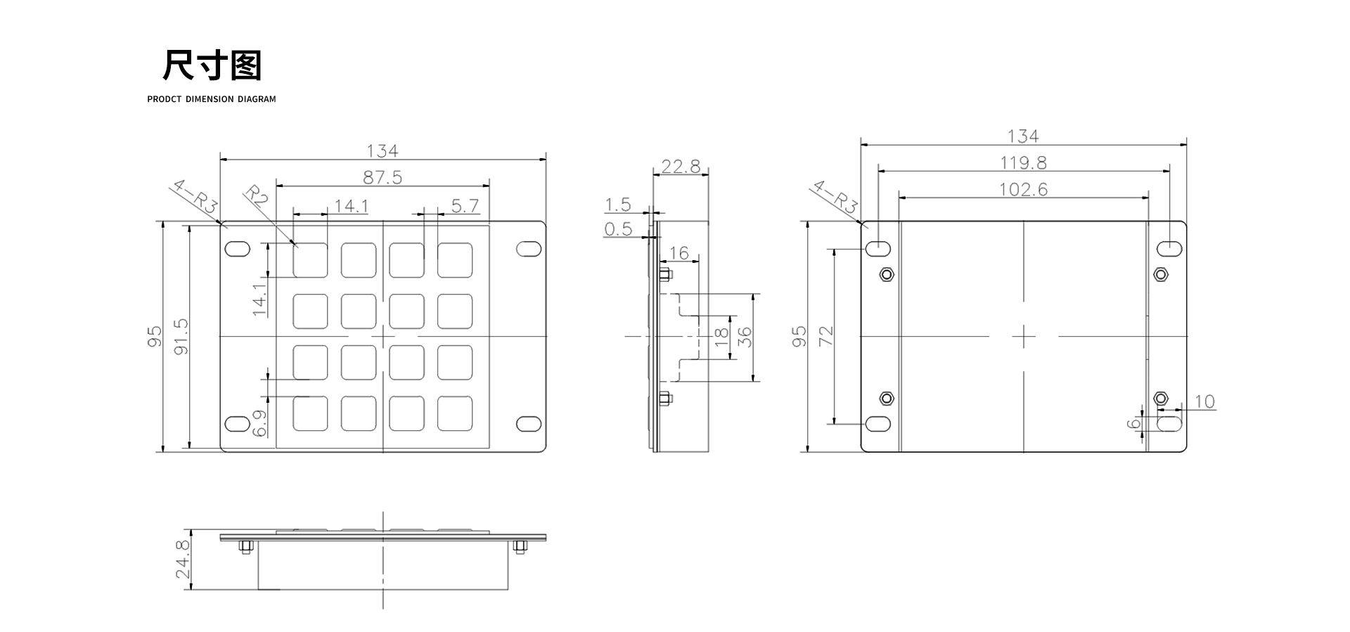 | 产品描述 | IP54金属工业数字小键盘,12个14*14mm按键布局,嵌入式带4个安装孔固定安装,按键采用0.8mm短行程锅仔片接触,内置采用工业级沉金PCB板,适用于工业设备、自助设备、快递柜等使用场景,通讯协议:矩阵、USB、PS2、RS232、RS485等可选 |