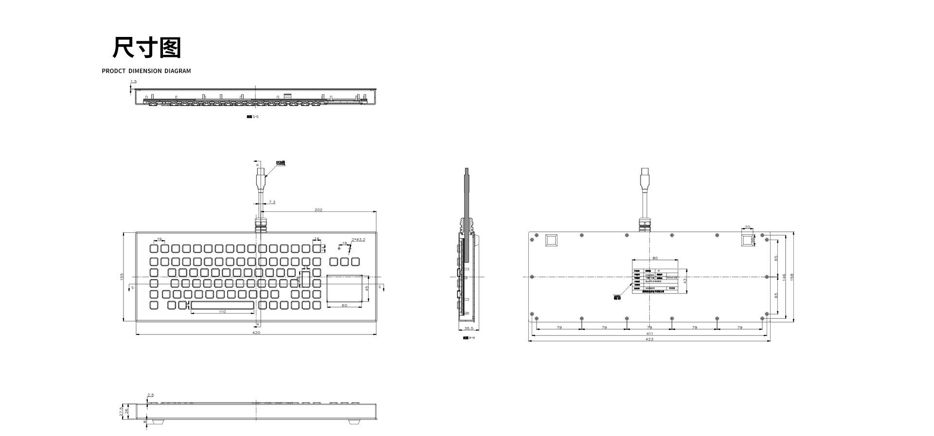 IP65工业桌面式免安装防爆键盘,内置电路采用工业级标准沉金PCB板,配用8mm高标准防爆电缆线在恶劣环境中可靠性强,产品通过石油化工II类本安防爆认证。