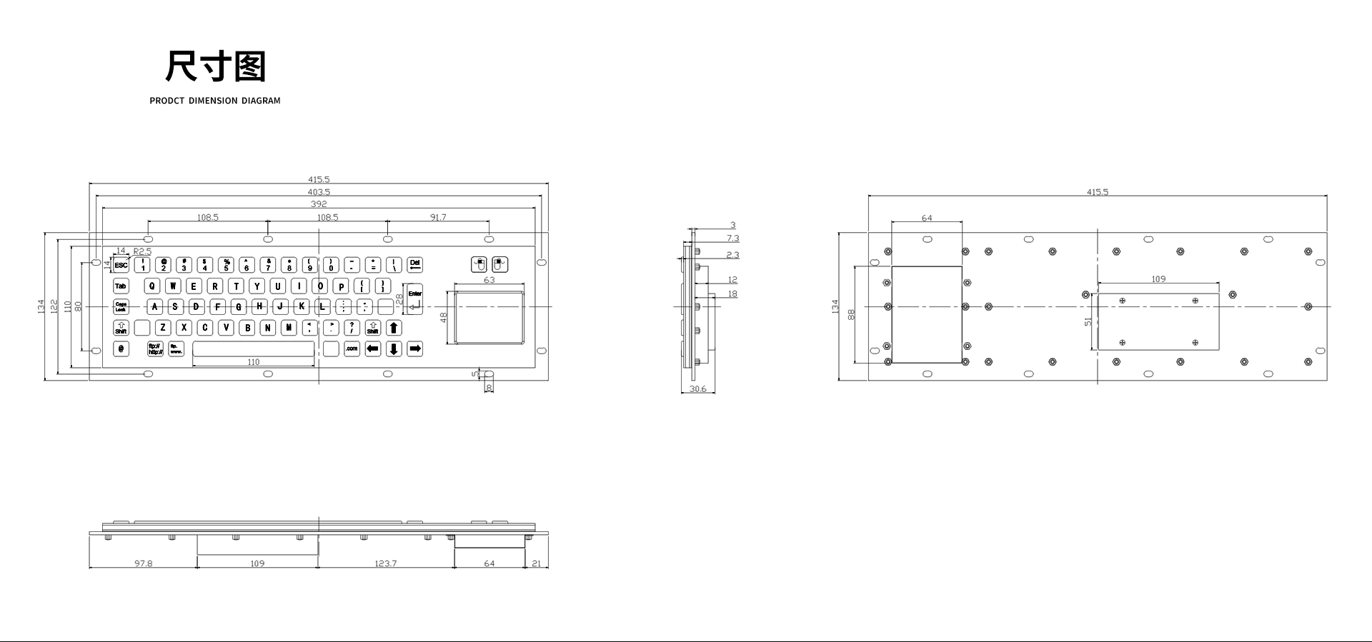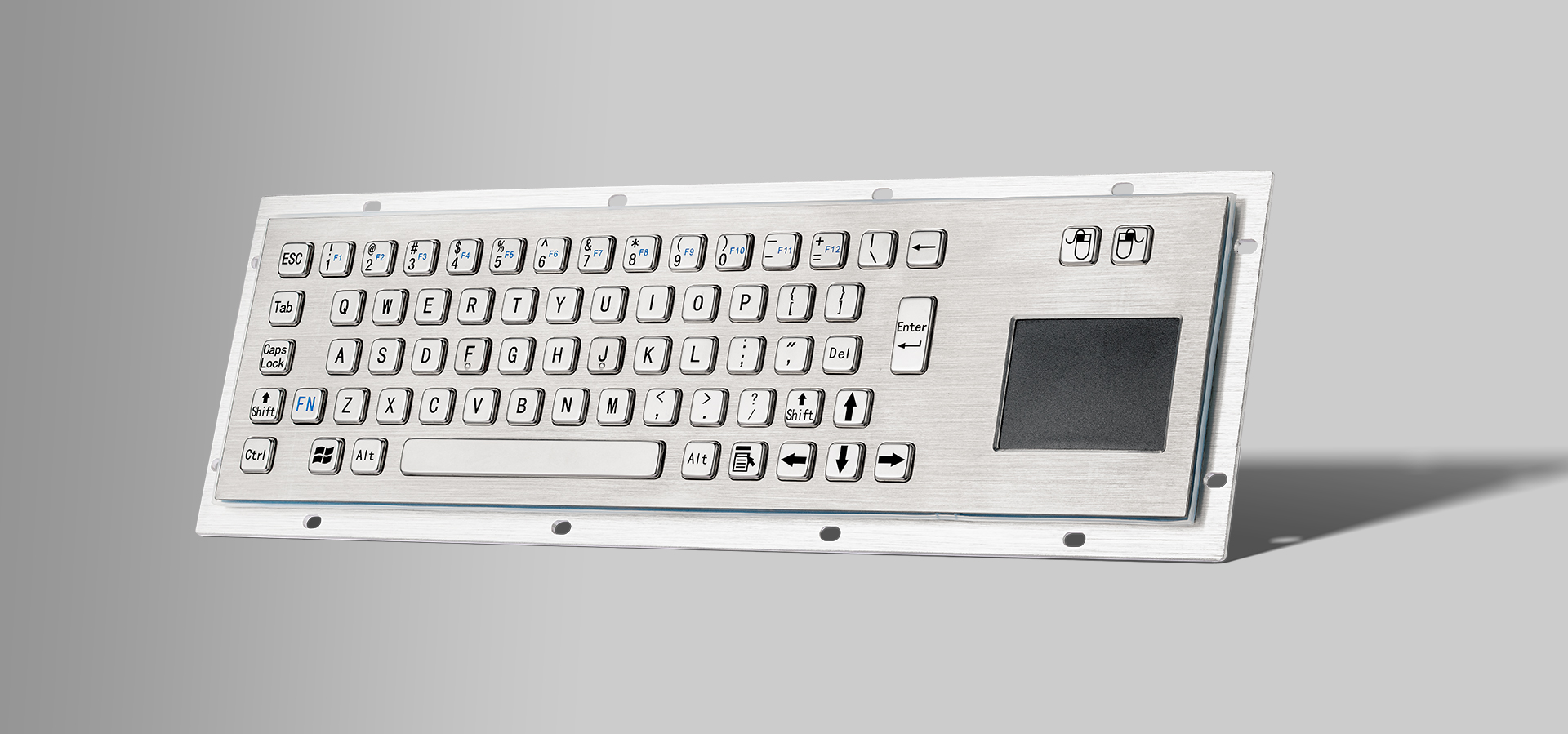 产品描述 IP65嵌入式带触摸板工业键盘,上嵌入式安装方式67键紧凑布局,触摸板分辨率: 800dpi可进行精准快速光标定位,如F1-F12功能键需+FN组合键使用,内置电路采用工业级标准沉金PCB板。