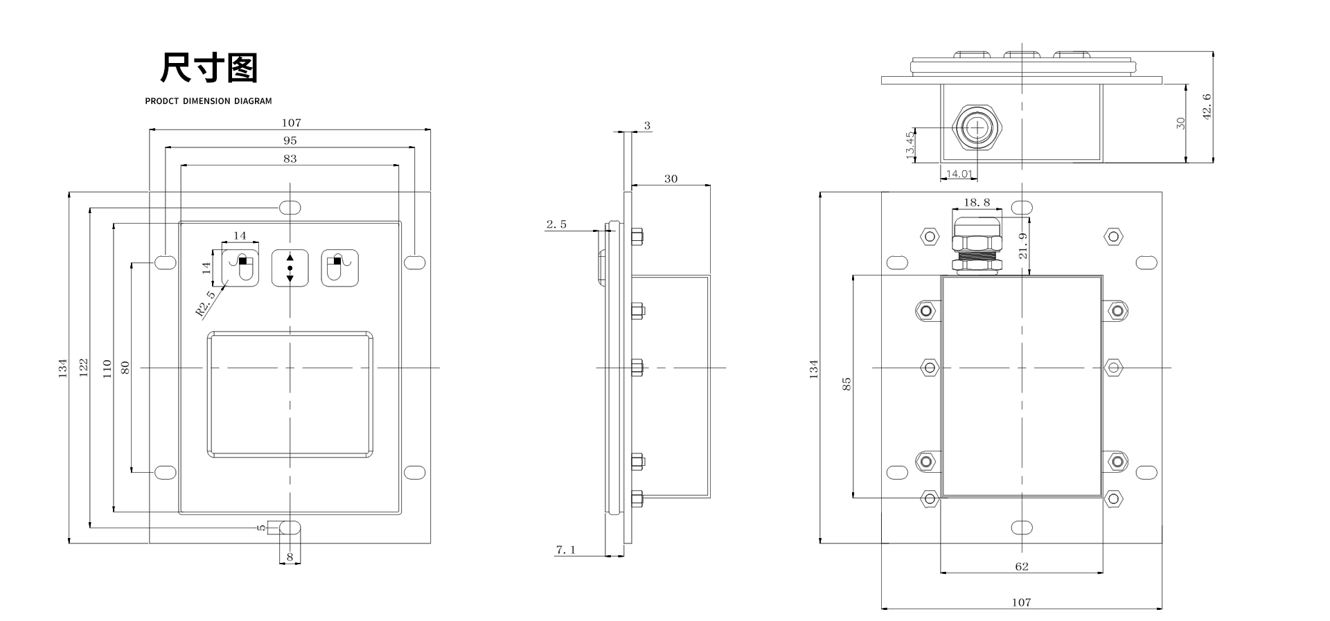 IP65嵌入式防爆触摸板鼠标,上嵌入式安装方式,3键触摸板布局鼠标中键为上下滚动功能,触摸板分辨率: 800dpi可进行精准快速光标定位,内置电路采用工业级标准沉金PCB板,产品通过II类本安防爆认证,广泛适用在:防爆变频器、防爆箱、各类控制柜、自动化控制等领域。