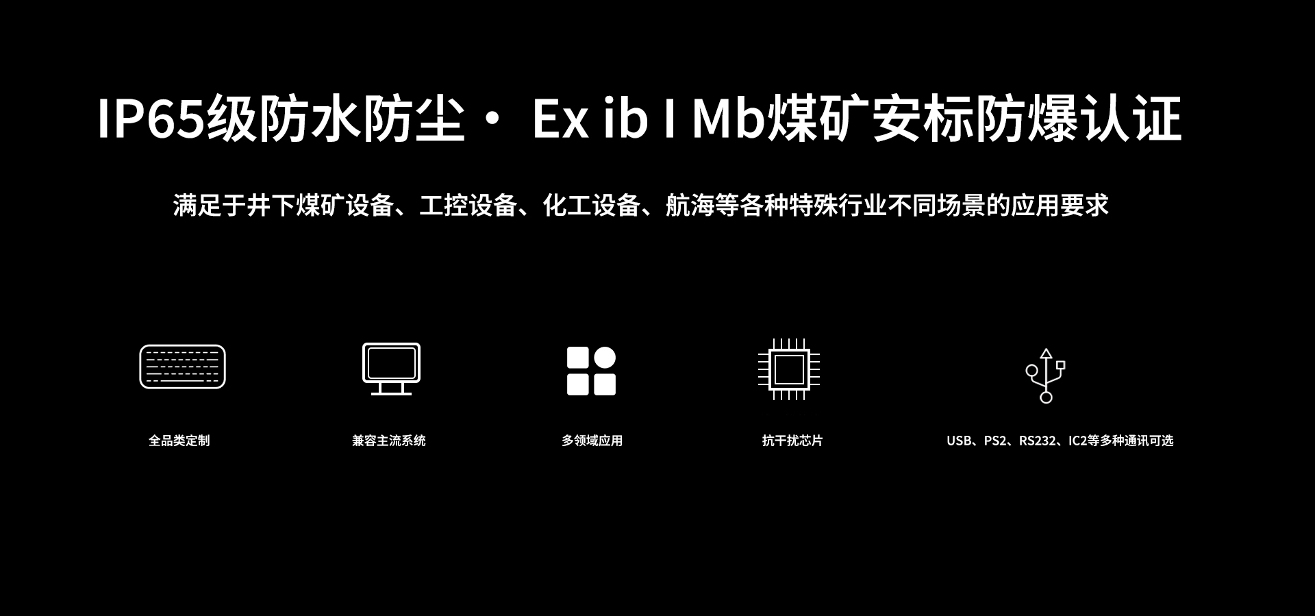 | 产品描述 | IP65桌面式无线键盘,采用2.4G通讯协议有效操作最长距离35米高标准,内置电路采用工业级标准沉金PCB板,产品通过矿用防爆认证、矿用产品安全标志证书认证。 |