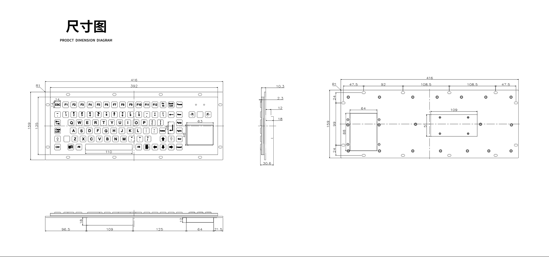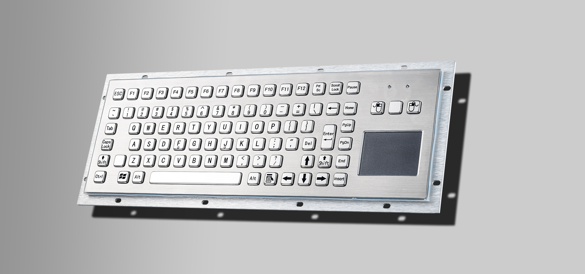 IP65嵌入式带触摸板工业键盘,上嵌入式安装方式89键布局,触摸板分辨率: 800dpi可进行精准快速光标定位,采用单独F1-F12功能键设计,内置电路采用工业级标准沉金PCB板。