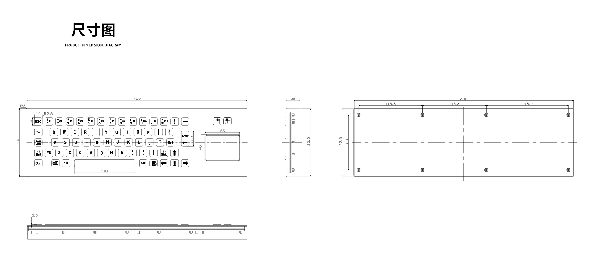 IP65工业桌面式免安装防爆键盘,带有键鼠一体式,触摸板分辨率: 800dpi可进行精准快速光标定位,内置电路采用工业级标准沉金PCB板,配用航空插头5mm工业USB线2米长,67按键紧凑布局,采用硅胶凸按键技术,1.5mm按键行程,产品通过石油化工II类本安防爆认证。