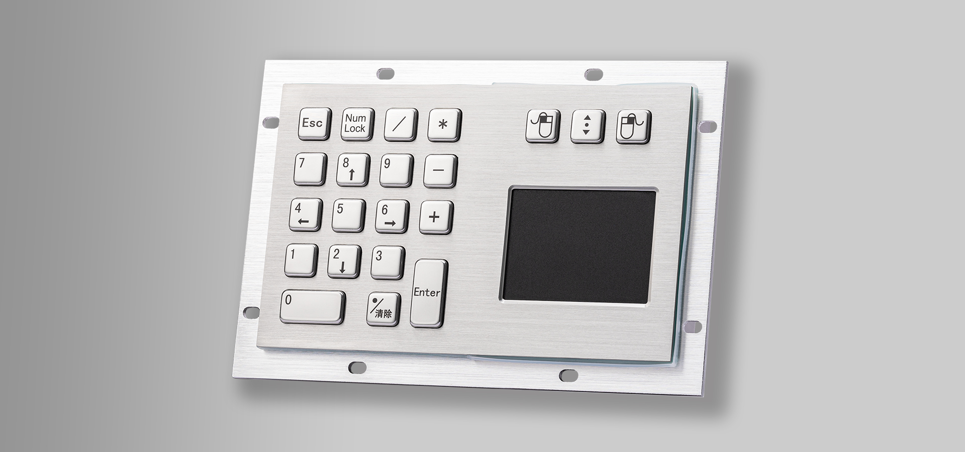 IP65 21键嵌入式带触摸板带小数字键盘,上嵌入式安装方式,带触摸板紧凑布局,触摸板分辨率: 800dpi可进行精准快速光标定位,内置电路采用工业级标准沉金PCB板,适用于:光伏印刷机、工业设备、控制箱、数控机床等 |