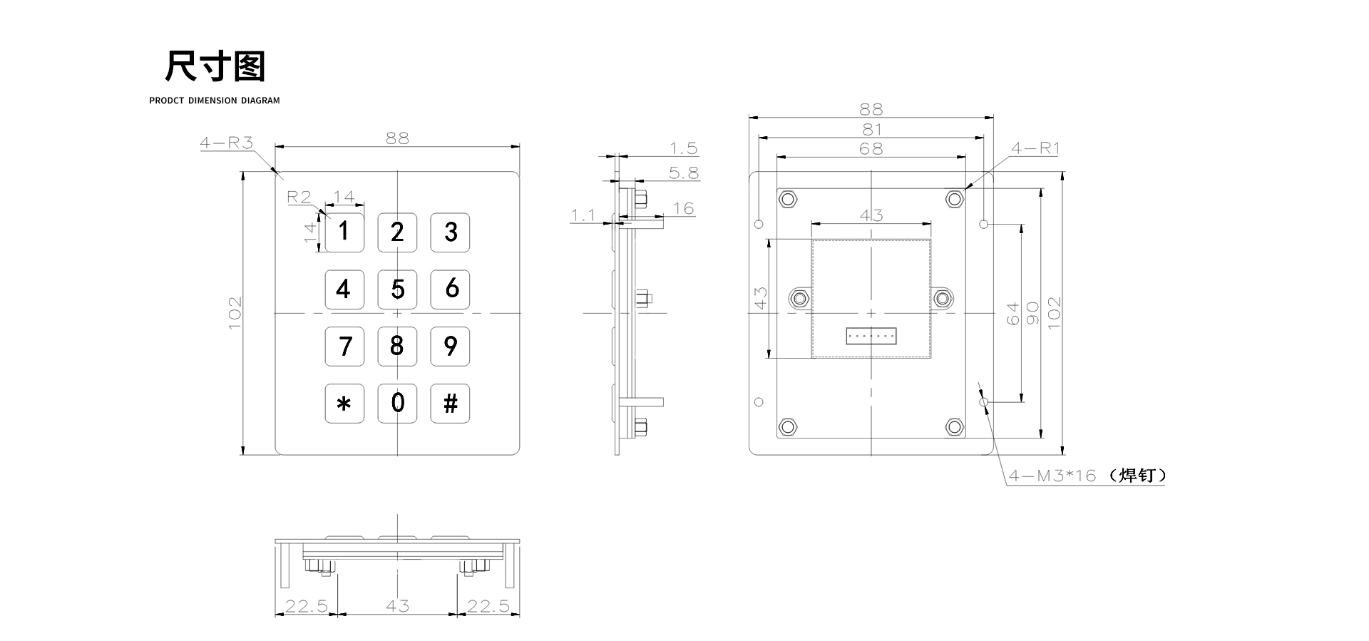 | 按键尺寸 | 14*14mm |