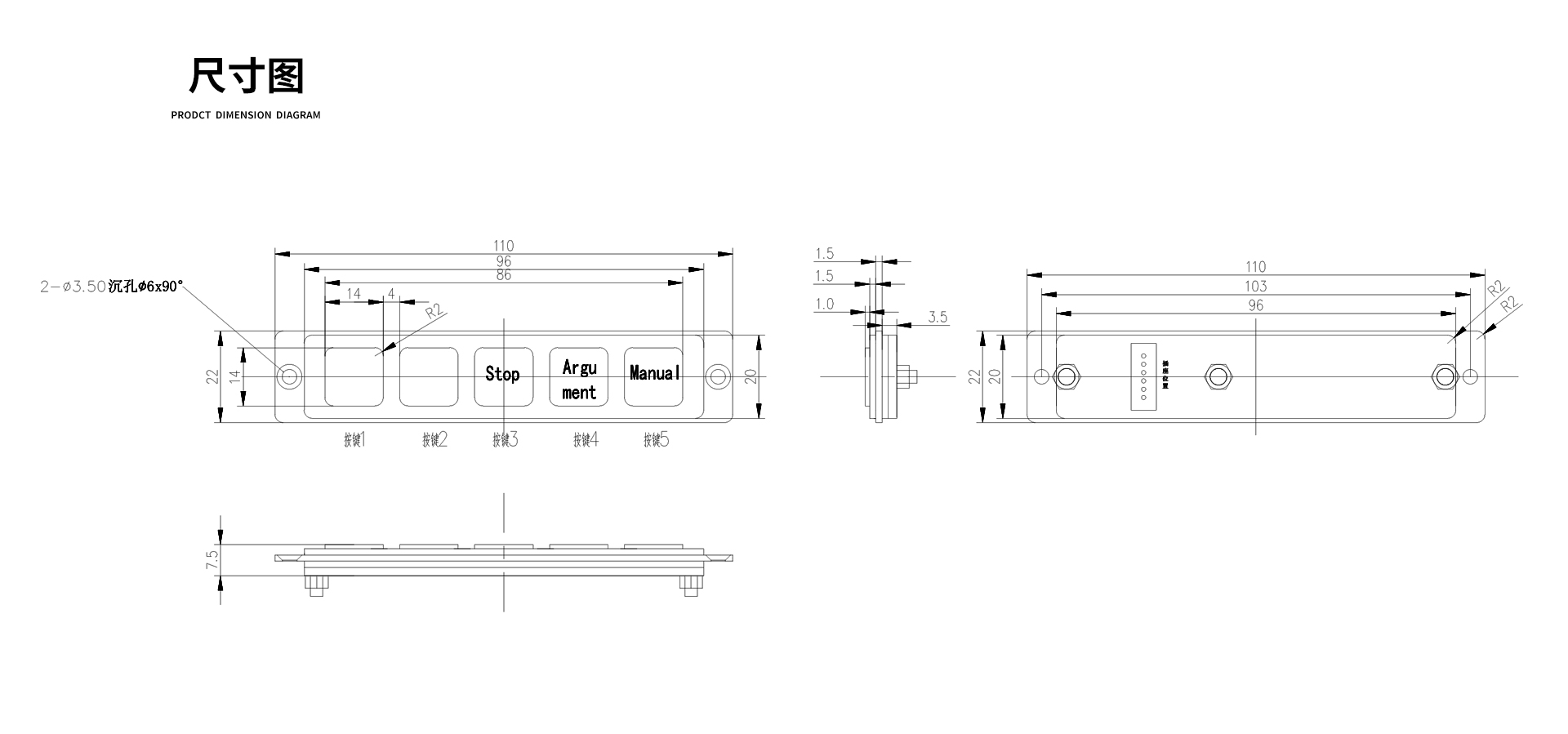 | 产品描述 | IP54金属工业数字小键盘,5个14*14mm按键布局,嵌入式带2个安装孔固定安装,按键采用0.7mm短行程锅仔片接触,内置采用工业级沉金PCB板,适用于工业设备、自助设备、快递柜等使用场景,通讯协议:矩阵、USB、PS2、RS232、RS485等可选 |