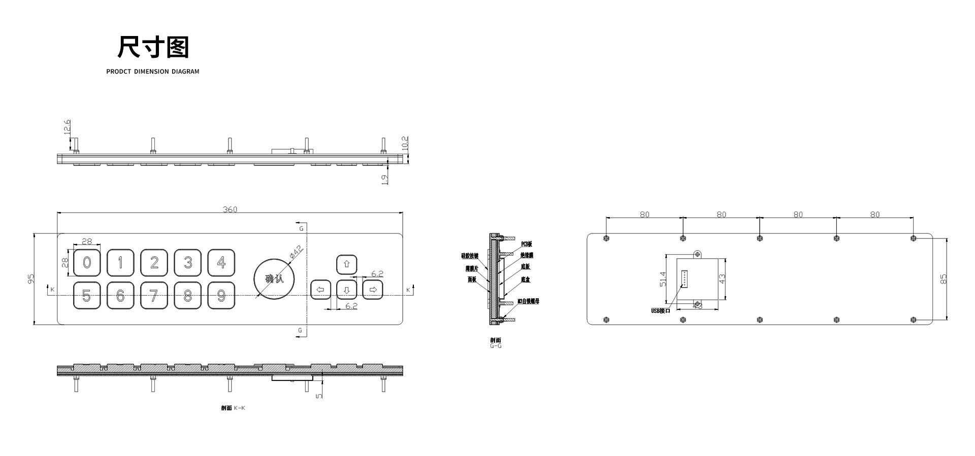 | 产品描述 | 嵌入式硅胶键盘,内置电路采用工业级标准沉金PCB板,大按键手感舒适可进行精准快速输入,操作畅顺,不易疲劳,噪音小。标准USB接口,低辐射,强屏蔽,抗干扰性强。 |