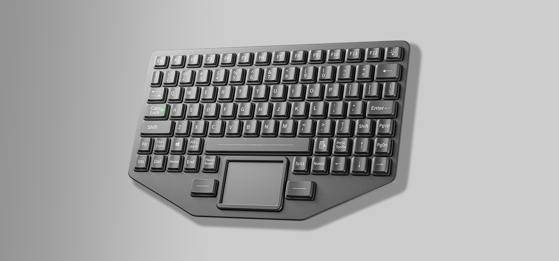 IP65嵌入式硅胶键盘,上嵌入式安装方式,89键布局带触摸板分辨率: 800dpi可进行精准快速光标定位,采用硅胶凸按键1.5mm按键行程,内置电路采用工业级标准沉金PCB板,手感舒适可进行精准快速输入,操作畅顺,不易疲劳,噪音小。标准USB接口,低辐射,强屏蔽,抗干扰性强。环境适应性:高低工作温度,湿热,振动,具有“可靠性、环境适应性、稳定性、兼容性”。 |
