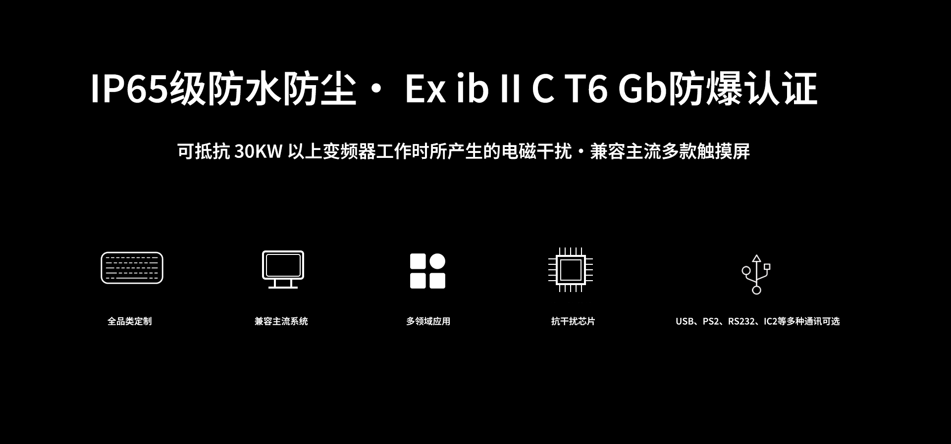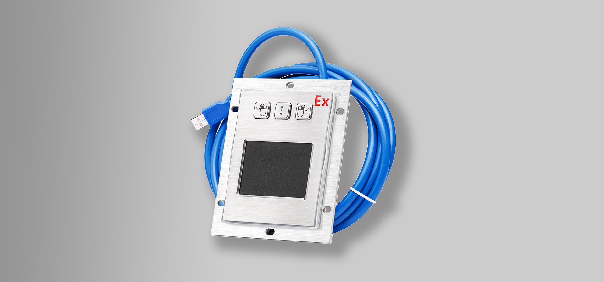 IP65嵌入式防爆触摸板鼠标,上嵌入式安装方式,3键触摸板布局鼠标中键为上下滚动功能,触摸板分辨率: 800dpi可进行精准快速光标定位,内置电路采用工业级标准沉金PCB板,产品通过II类本安防爆认证,广泛适用在:防爆变频器、防爆箱、各类控制柜、自动化控制等领域。