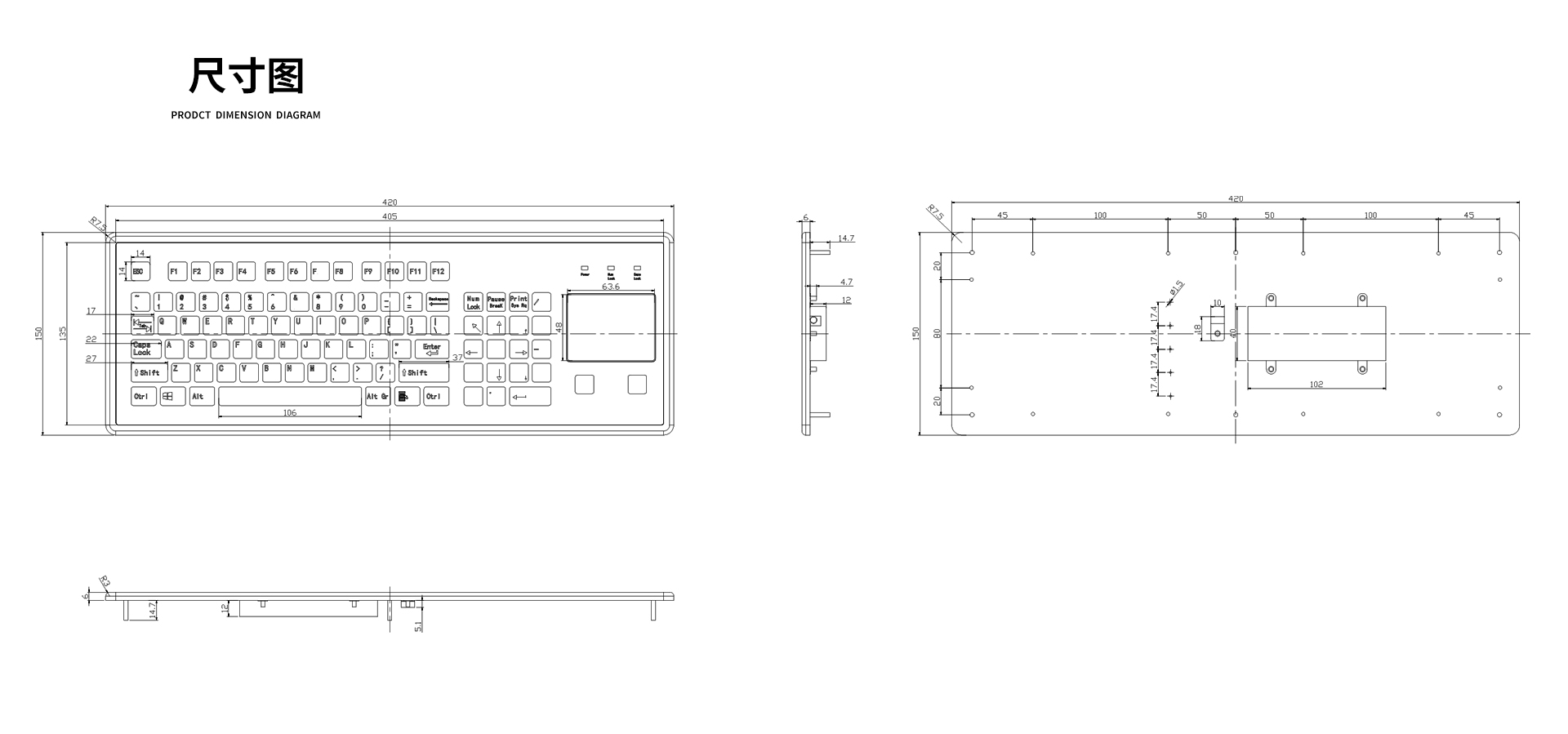 前面板密封IP68嵌入式薄膜键盘,93键带触摸板布局,触摸板分辨率: 800dpi可进行精准快速光标定位。采用高品质镀金锅仔片手感好,操作畅顺。标准USB接口,低辐射,强屏蔽,抗干扰性强。环境适应性:高低工作温度,湿热,振动,具有“可靠性、环境适应性、稳定性、兼容性”。