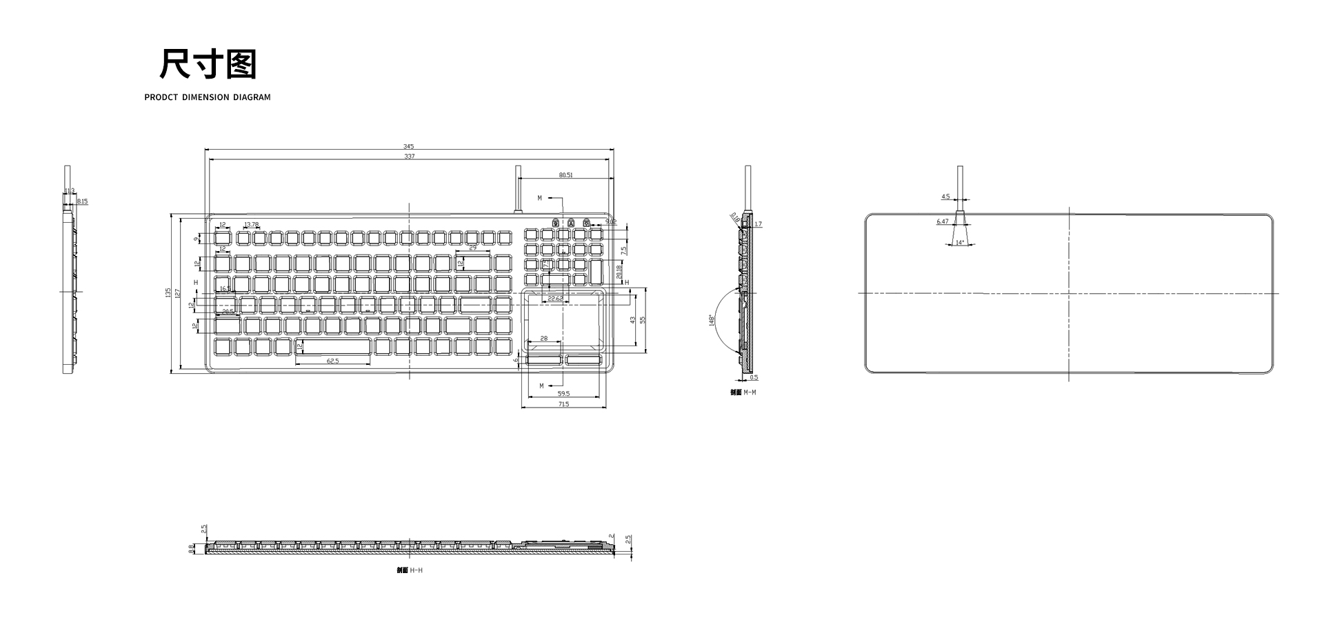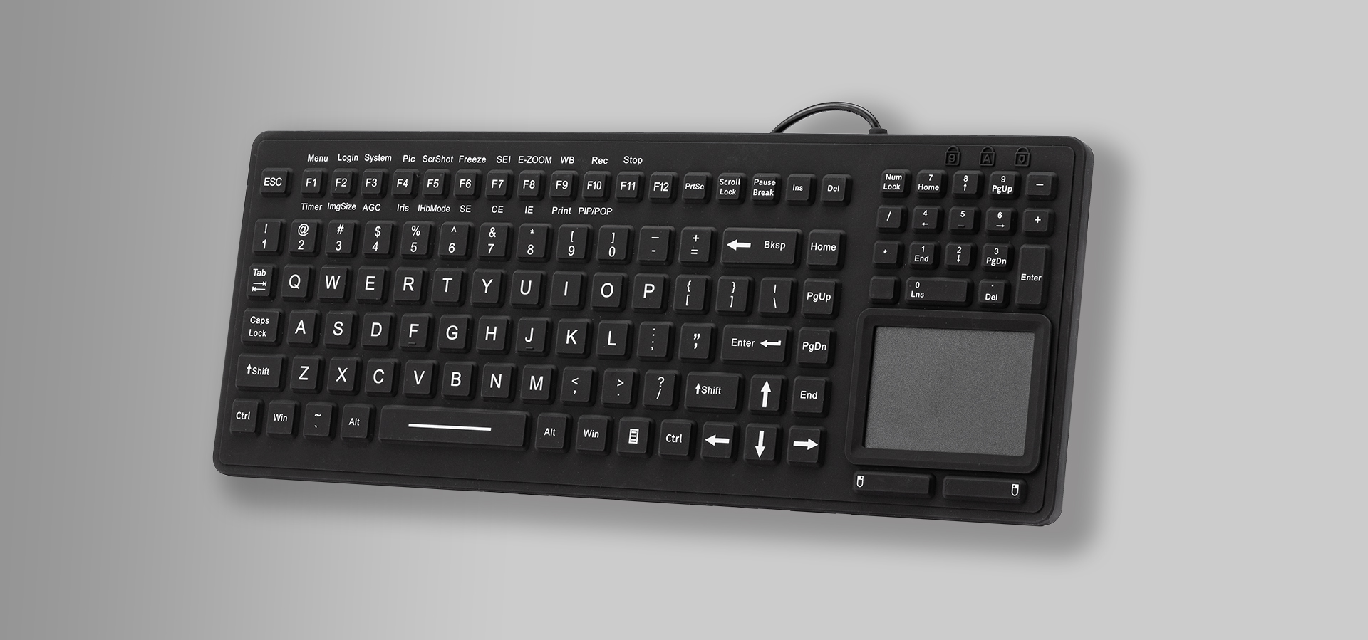 IP68桌面式硅胶键盘免安装,107键布局带采用硅胶凸按键1.5mm按键行程,内置电路采用工业级标准沉金PCB板,手感舒适可进行精准快速输入,操作畅顺,不易疲劳,噪音小。标准USB接口,低辐射,强屏蔽,抗干扰性强。环境适应性:高低工作温度,湿热,振动,具有“可靠性、环境适应性、稳定性、兼容性”。