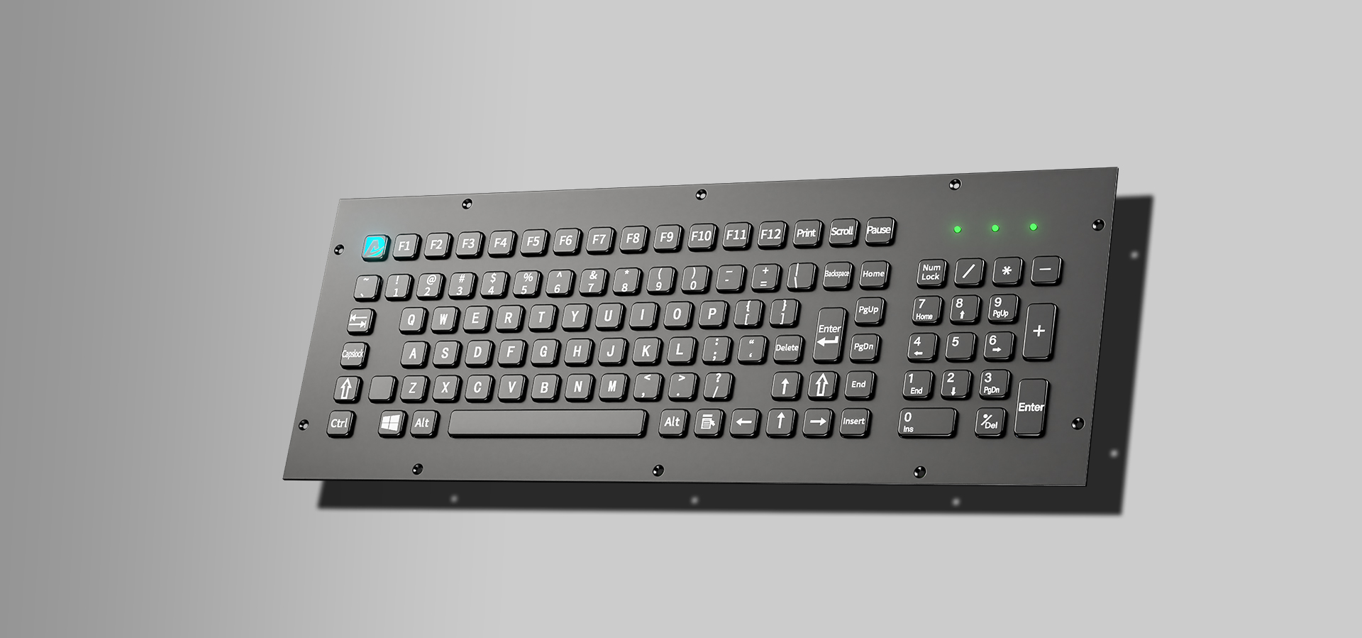 IP65嵌入式带触摸板工业键盘,上嵌入式安装方式67键紧凑布局,触摸板分辨率: 800dpi可进行精准快速光标定位,如F1-F12功能键需+FN组合键使用,内置电路采用工业级标准沉金PCB板。