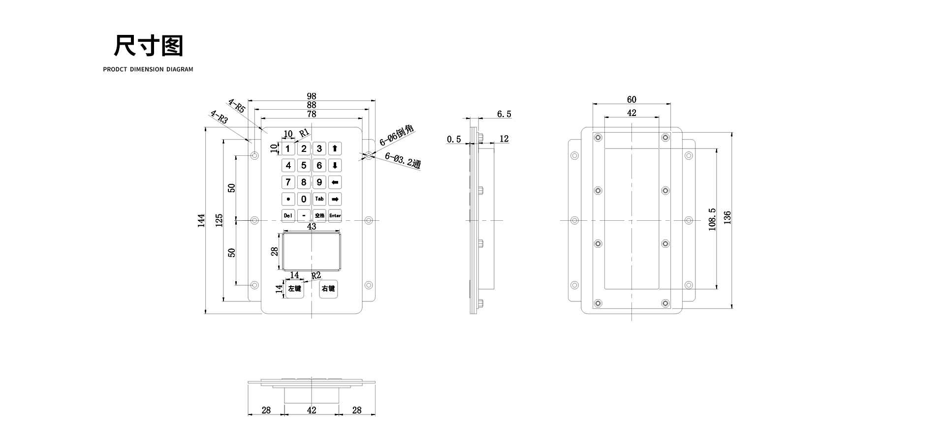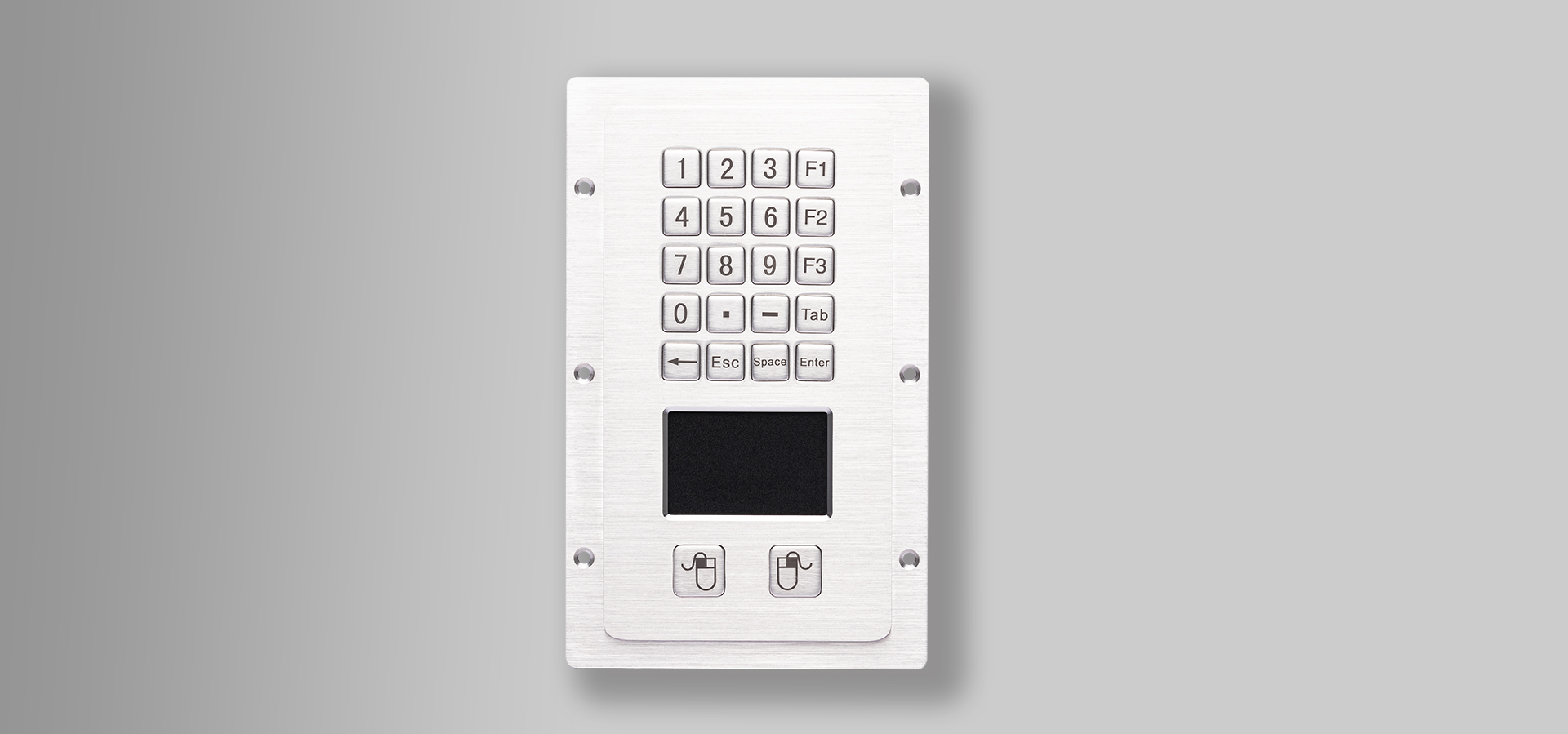 IP54 22键嵌入式带触摸板键盘,上嵌入式安装方式,带触摸板紧凑布局,触摸板分辨率: 800dpi可进行精准快速光标定位,内置电路采用工业级标准沉金PCB板,适用于:变频器、控制柜、煤矿设备等。