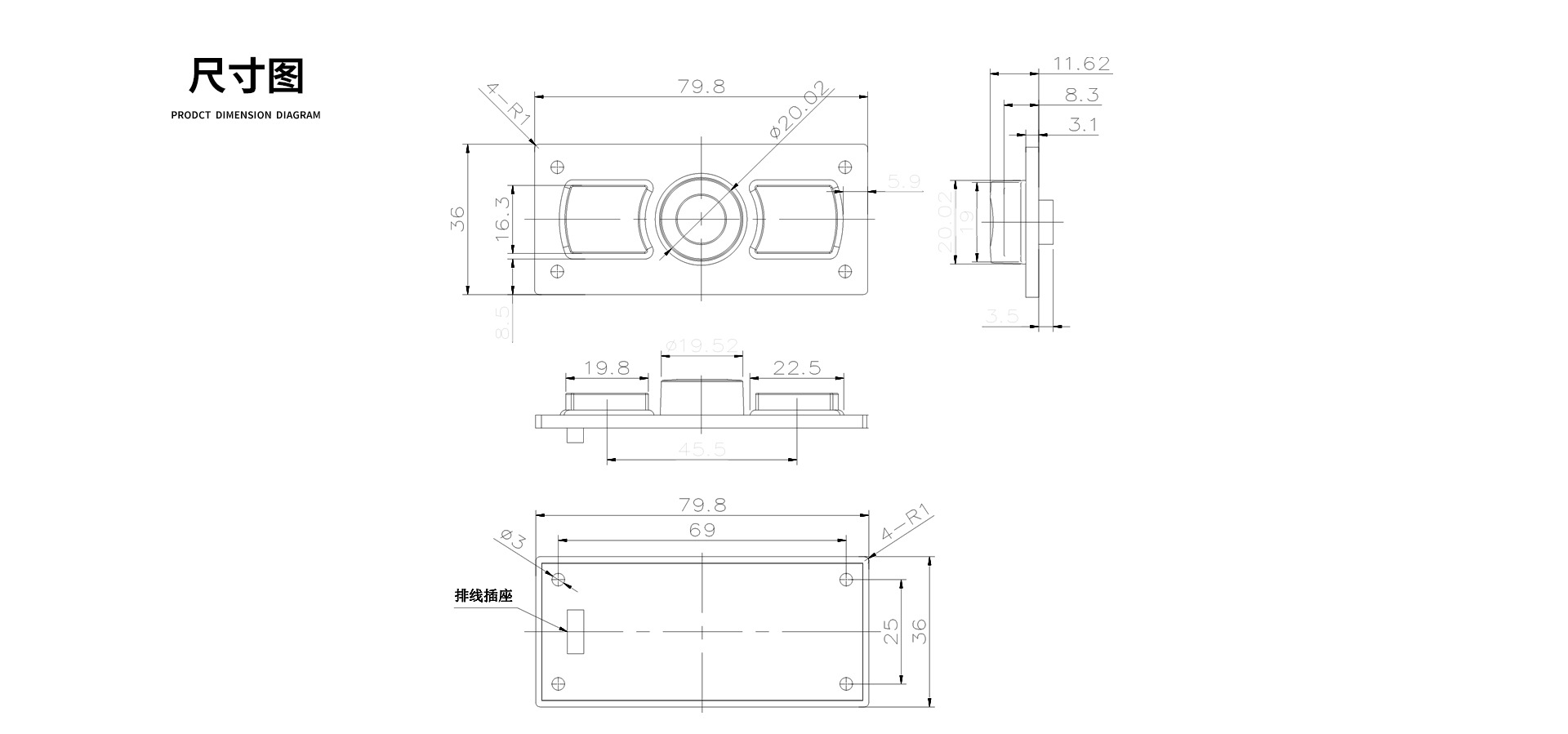 IP65嵌入式硅胶指尖鼠标,可精准快速进行光标定位,两个按键为鼠标左右键功能。带4个安装孔,嵌入式安装方式。符合低辐射,强屏蔽,抗干扰性强。环境适应性:高低工作温度,湿热,振动,具有“可靠性、环境适应性、稳定性、兼容性”满足100%纯国产化。