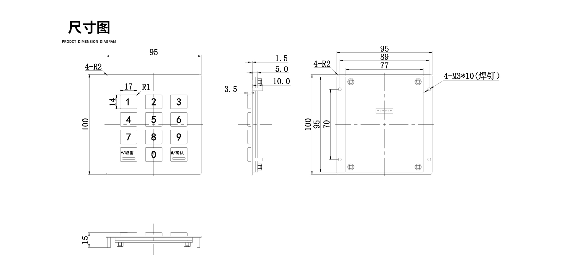| 产品描述 | IP65金属工业背光数字小键盘,12个14*14mm按键布局,嵌入式带4个螺钉固定安装,内置采用工业级沉金PCB板,适用于工业设备、自助设备、快递柜等使用场景,通讯协议:矩阵、USB、PS2、RS232、RS485等可选 |