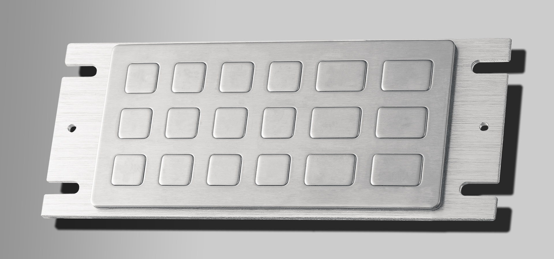 | 产品描述 | IP54金属工业键盘,嵌入式带4个安装孔固定安装,按键采用0.7mm短行程锅仔片接触,内置采用工业级沉金PCB板,适用于工业设备、缝纫机、自动化设备、控制柜、电控箱、机器人等使用场景,通讯协议:矩阵、USB、PS2、RS232、RS485等可选 |