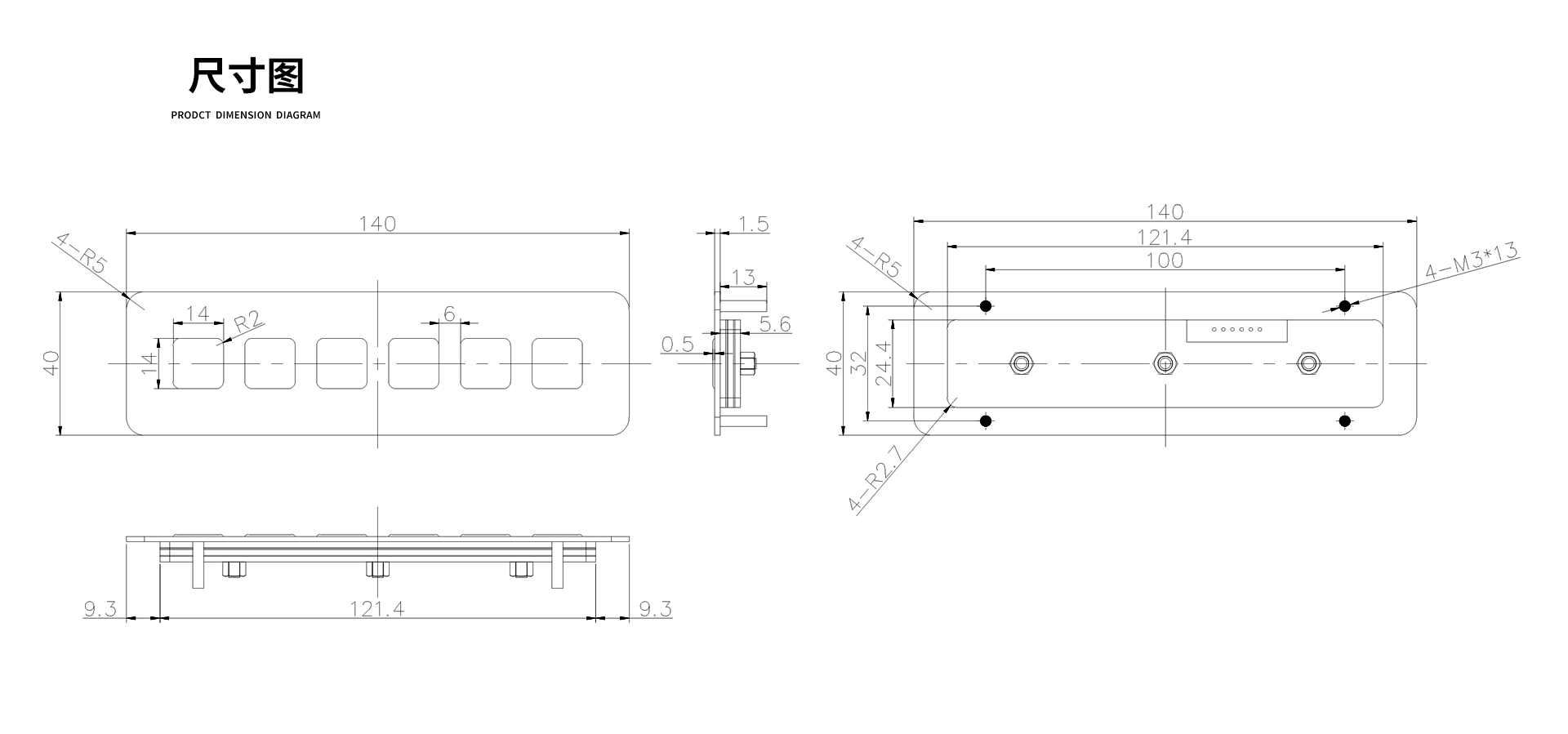 | 产品描述 | IP54金属工业数字小键盘,6个14*14mm按键布局,嵌入式带4个螺钉固定安装,按键采用0.7mm短行程锅仔片接触,内置采用工业级沉金PCB板,适用于工业设备、自助设备、快递柜等使用场景,通讯协议:矩阵、USB、PS2、RS232、RS485等可选 |