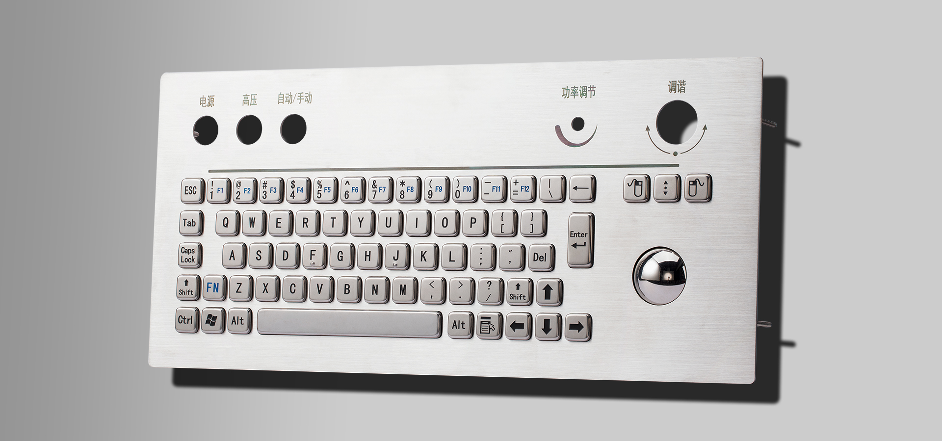 | 产品描述 | 定制面板带轨迹球专用键盘,布局预留客户其他集成安装孔,轨迹球配用直径36mm,300转/min可进行精准快速光标定位,如F1-F12功能键需+FN组合键使用,内置电路采用工业级标准沉金PCB板。 |
